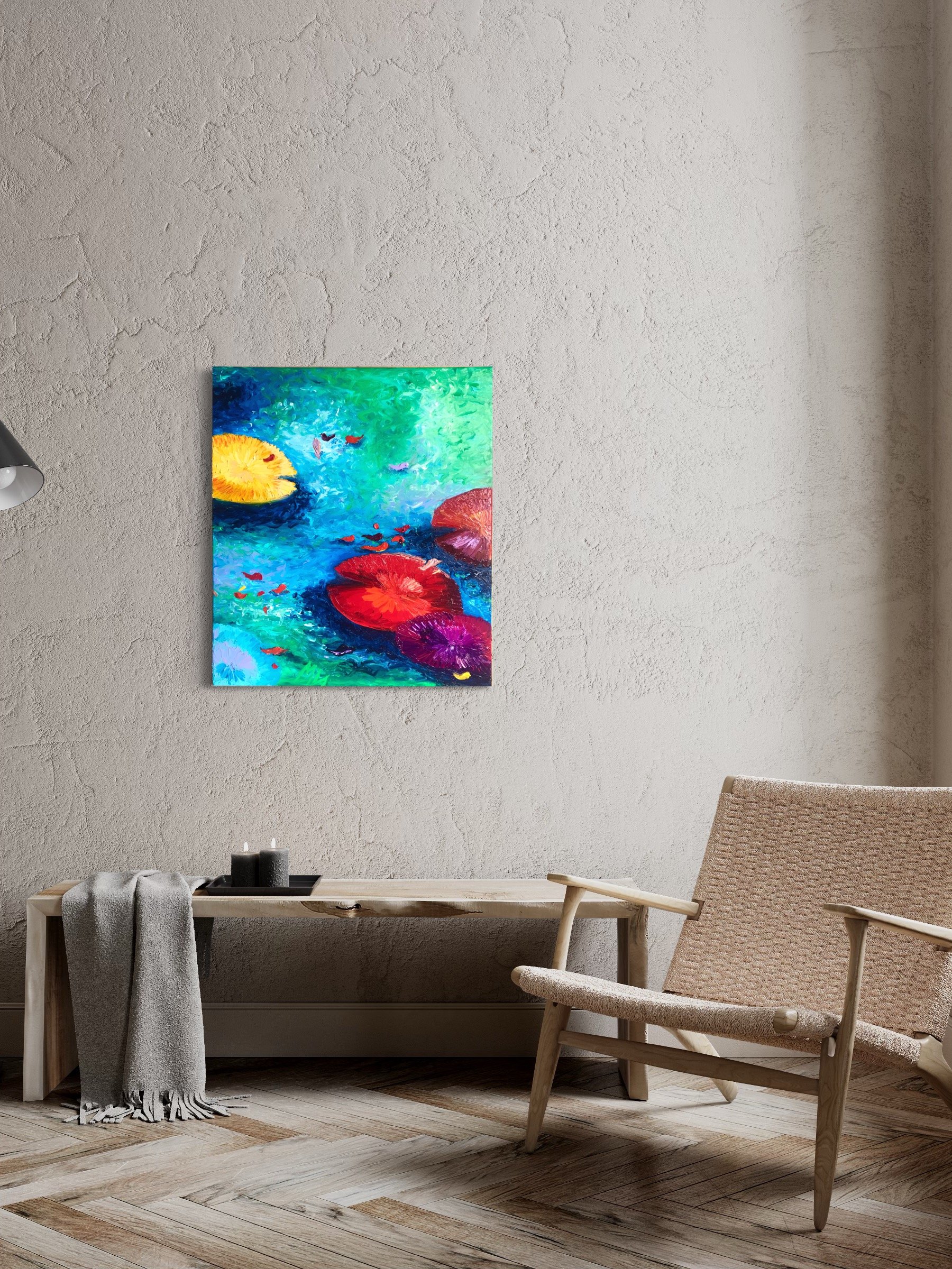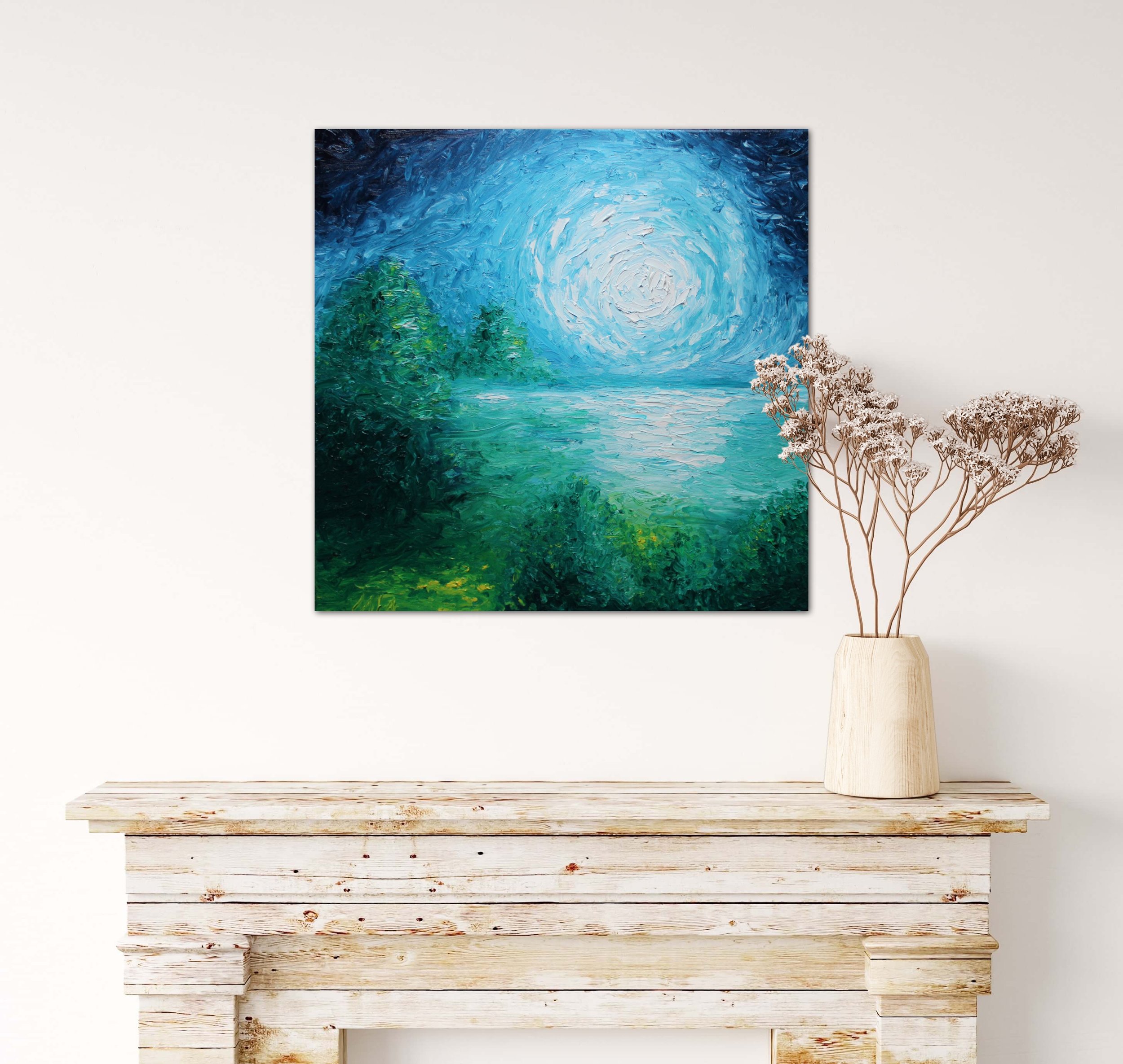 So wird ein Gefühl dafür vermittelt, wie die Energie meiner Gemälde mit Möbeln, Materialien und Architektur interagieren. Denn Kunst lebt nicht nur an der Wand, sie wird Teil deiner Welt.